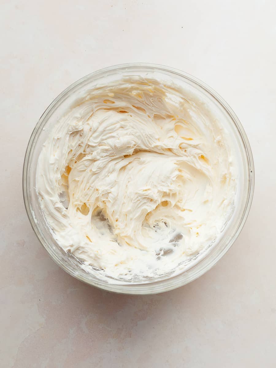 Make sure the cream cheese is at room temperature before making the filling. I like to slice the block of cream cheese into smaller chunks and place them on a plate. Smaller pieces soften much faster than a whole block. It should take about 15-20 minutes at room temperature.