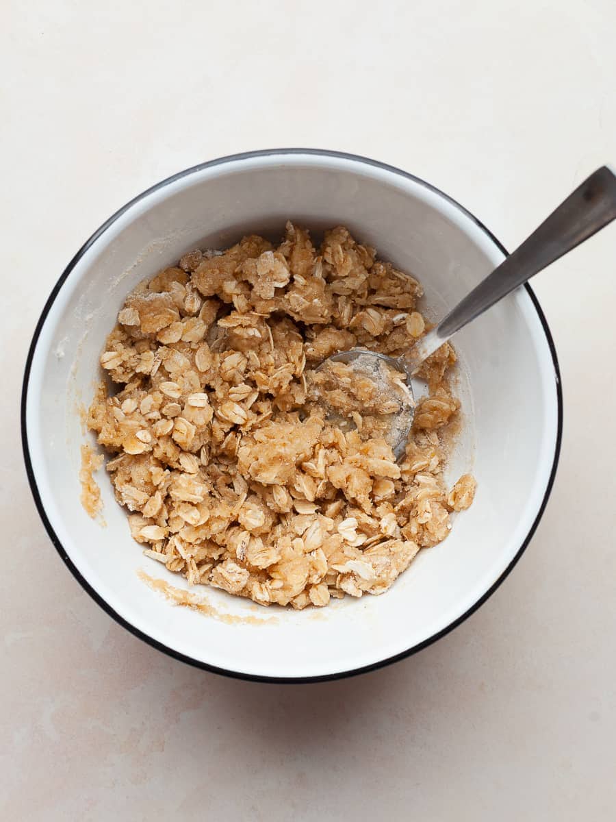 - Place the oatmeal streusel topping in the refrigerator until needed.