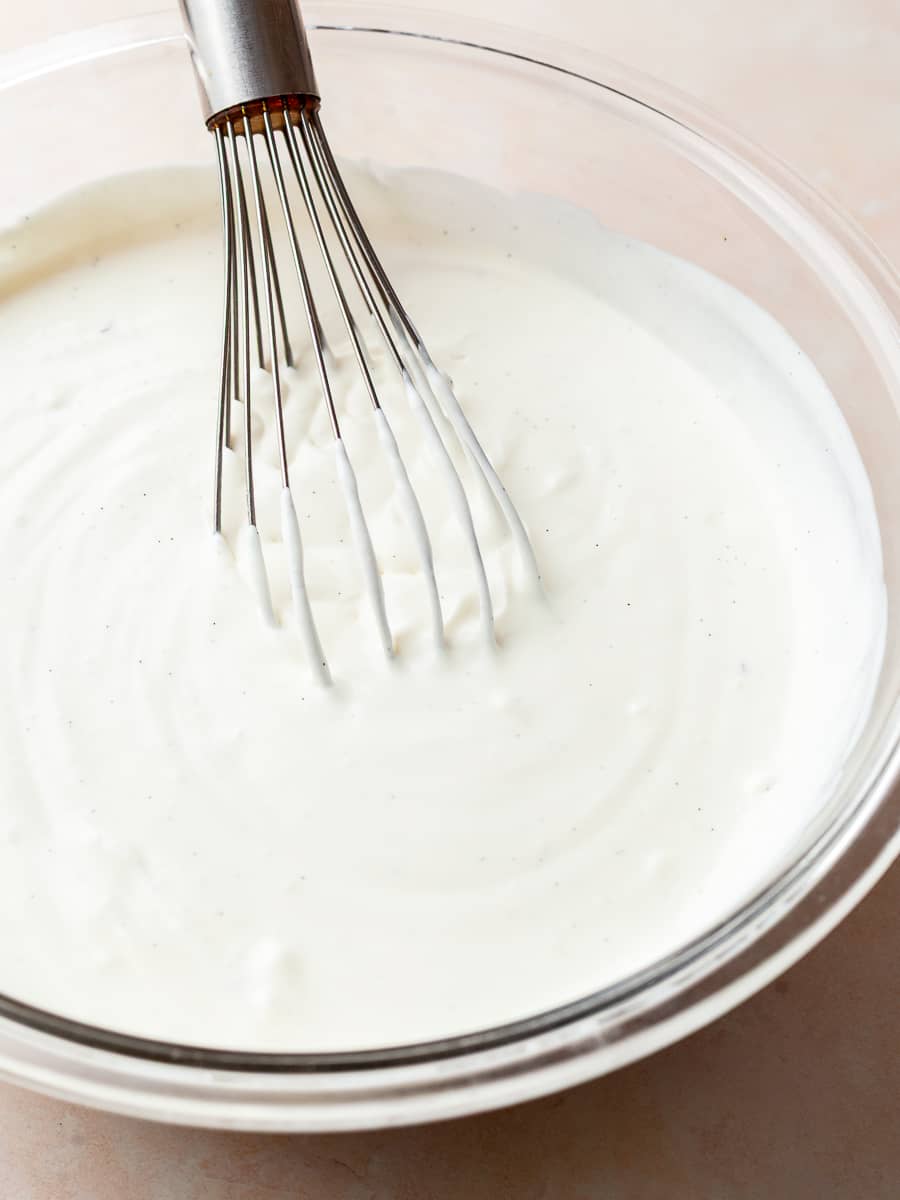 - Step 3: Whisk the ingredients until smooth and no lumps of sour cream remain. Place the bowl in the fridge while you whip the heavy cream.